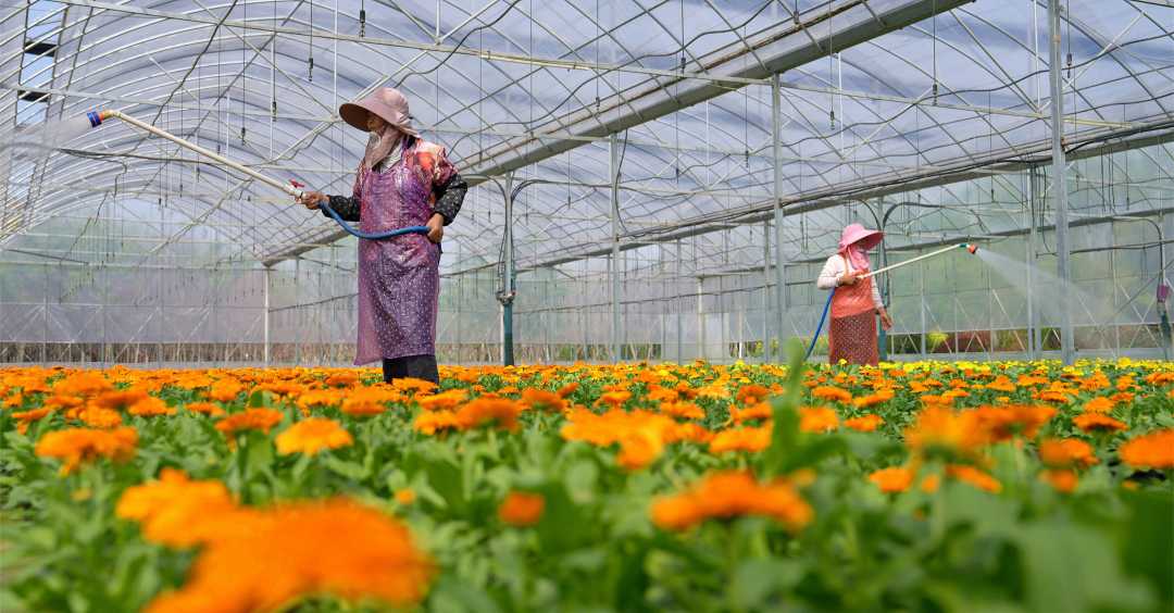 江苏海安:盆栽花卉管护忙