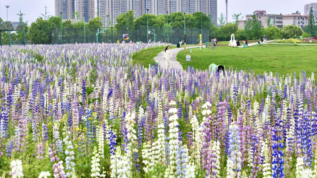 4月17日,江西省南昌市马兰花海公园,大片鲁冰花迎来盛放期,勾勒出一幅温柔绚烂的春日画卷。
