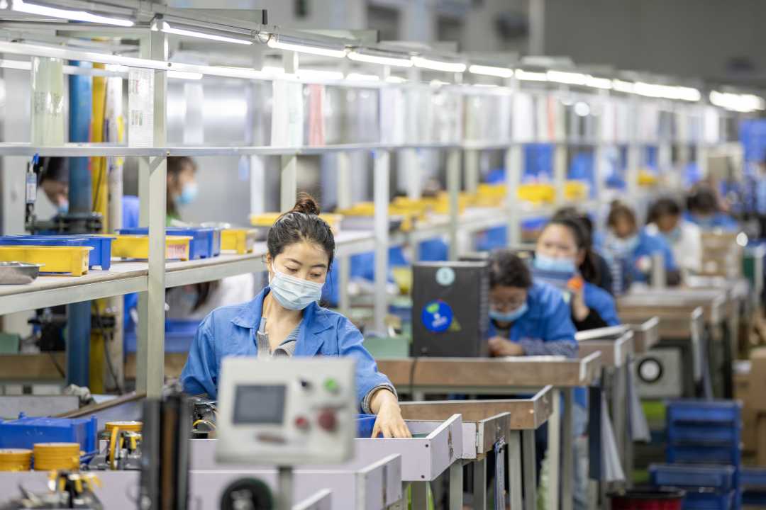 4月17日,工人在贵州省毕节高新技术产业开发区贵州贵航新能源科技有限公司锂电池生产车间作业。时下,毕节高新技术产业开发区各企业开足马力忙生产、赶订单、拓市场。