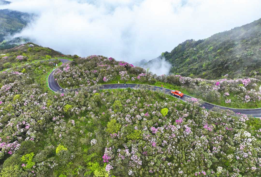 湖南双牌:杜鹃花开引客来