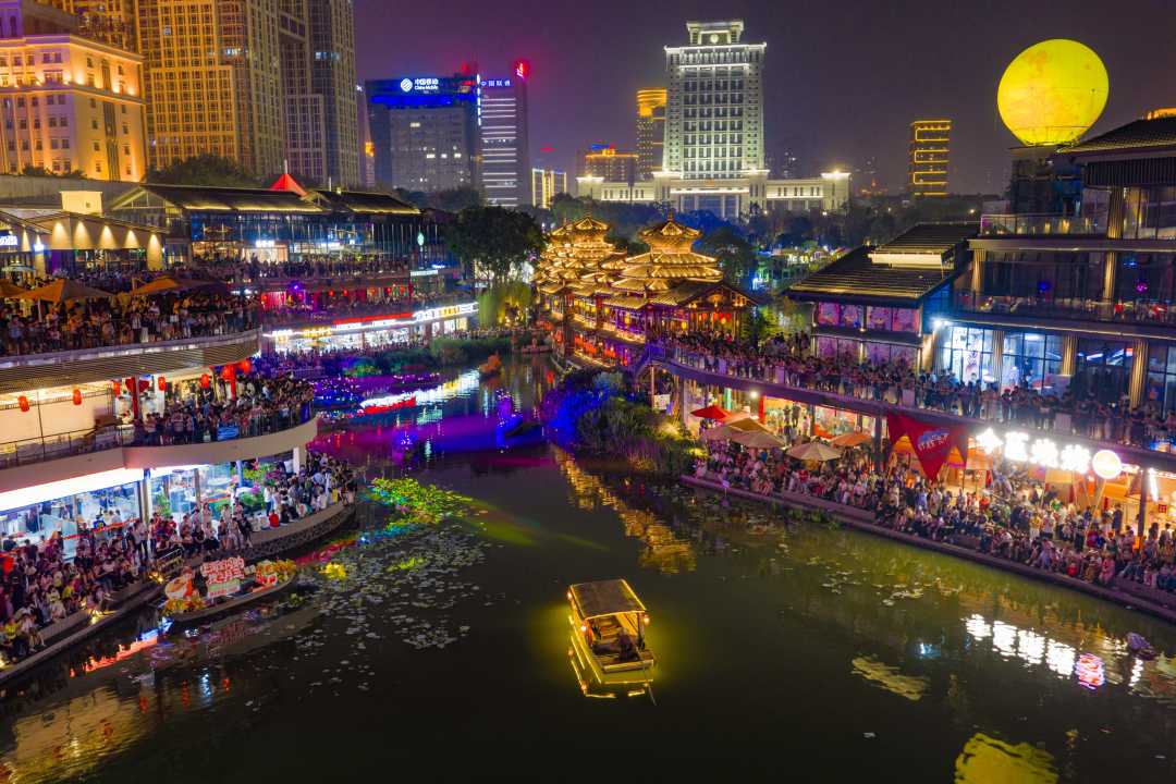 广西南宁:民歌湖小镇流光溢彩
