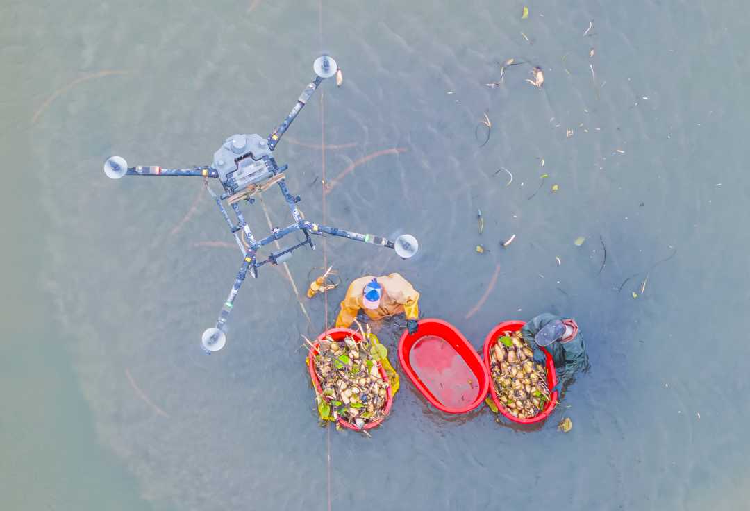 江苏宿迁:无人机助力莲藕栽种