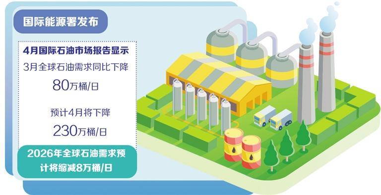 国际能源署(IEA)近日发布的4月份国际石油市场报告显示,2月底爆发的中东冲突正在颠覆全球石油市场展望。3月,全球石油需求同比下降80万桶/日,预计4月将下降230万桶/日,2026年全球石油需求预计将缩减8万桶/日。同时,报告预计,2026年二季度全球石油需求将下降150万桶/日,这将是自疫情重创石油消费以来的最剧烈降幅。此外,随着资源稀缺及价格持续高企,石油产品需求下降最严重地区将从中东和亚太地区蔓延至全球其他地区。