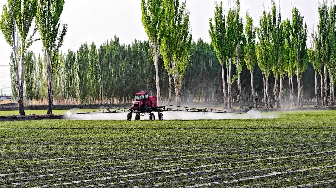 4月21日,新疆生产建设兵团第二师22团2连高标准农田,自走式喷杆喷雾机在植保作业。近年来,兵团第二师22团推广“全程机械化+智慧植保”模式,从育苗、移栽到田间管理实现智能化管控,为农作物稳产增收提供保障。