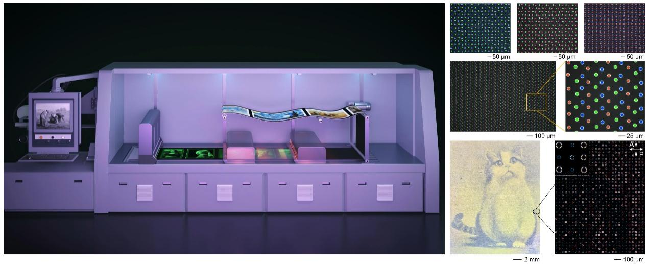 让光学超材料生产像印报纸一样简单!记者从中国科学院获悉,近日,中国科学院化学研究所宋延林研究员、李会增副研究员、李凯旋博士联合新加坡国立大学研究团队,提出了打印多尺度光学超材料的全新范式,实现了材料光学特性与结构设计的协同优化;其自主研发的卷对卷增材纳米打印制造设备,打破光学超材料低成本、规模化、个性化量产难以兼顾的长期困境,实现了多尺度光学超材料的大规模可控制备与精准集成,让超材料生产像印报纸一样简单,为多尺度超材料研究及微纳光子学应用开辟了新路径。相关研究成果的论文近日发表在国际学术期刊《自然》上。