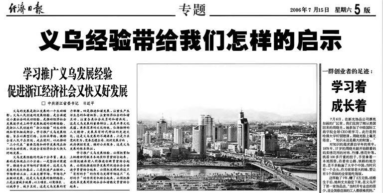 习近平同志20年前在经济日报发文深入阐释“义乌发展经验”