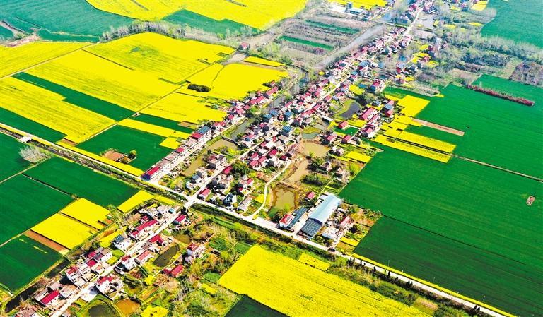 3月28日,安徽省铜陵市义安区胥坝乡春意盎然,金黄的油菜花田与翠绿的小麦田交错铺展。