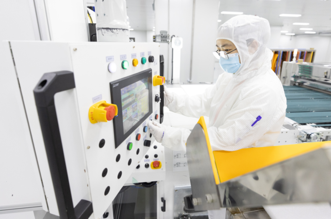 湖北宝昂光电有限公司技术人员正在操作生产偏光片。