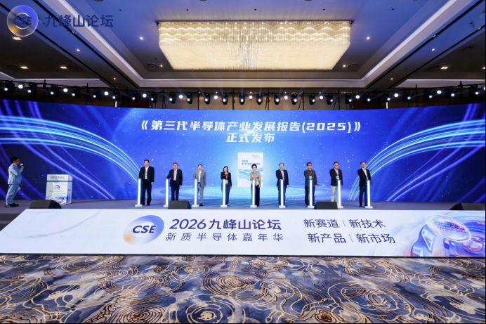 会上发布的《第三代半导体产业发展报告2025》提到,中国半导体产业已实现从技术追赶到局部领先的跃升,半导体照明产业总产值约1037亿元,规模居世界第一;国防和5G移动通信需求推动氮化镓射频电子市场规模119亿元、同比增长9.2%;中国企业碳化硅材料占全球供给约50%,进入全球第一梯队。2026年,预计第三代半导体功率及射频电子产值增速将达15%以上。